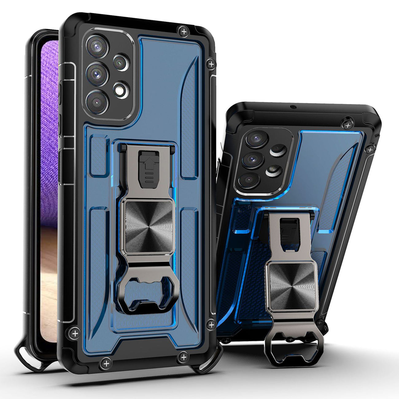Kickstand Ring Holder/Bottle Opener with Magnetic Car Mount for Samsung Galaxy A32 In Blue quantity