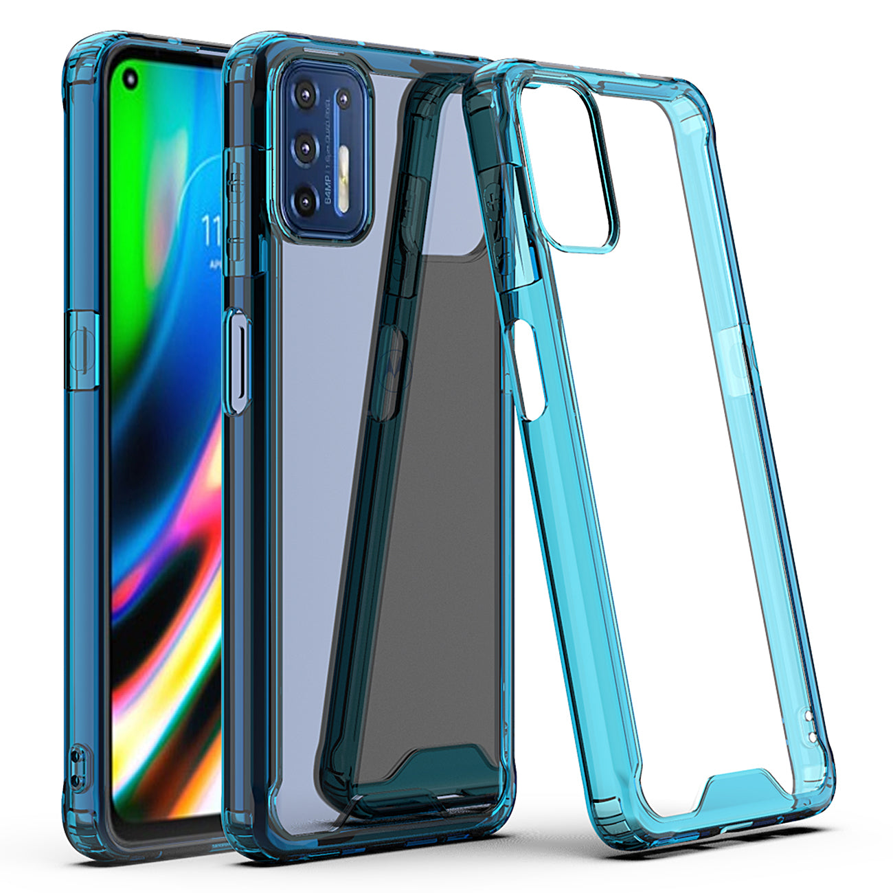 Moto G9 Plus High quality TPU Bumper and Clarity PC Case In Blue