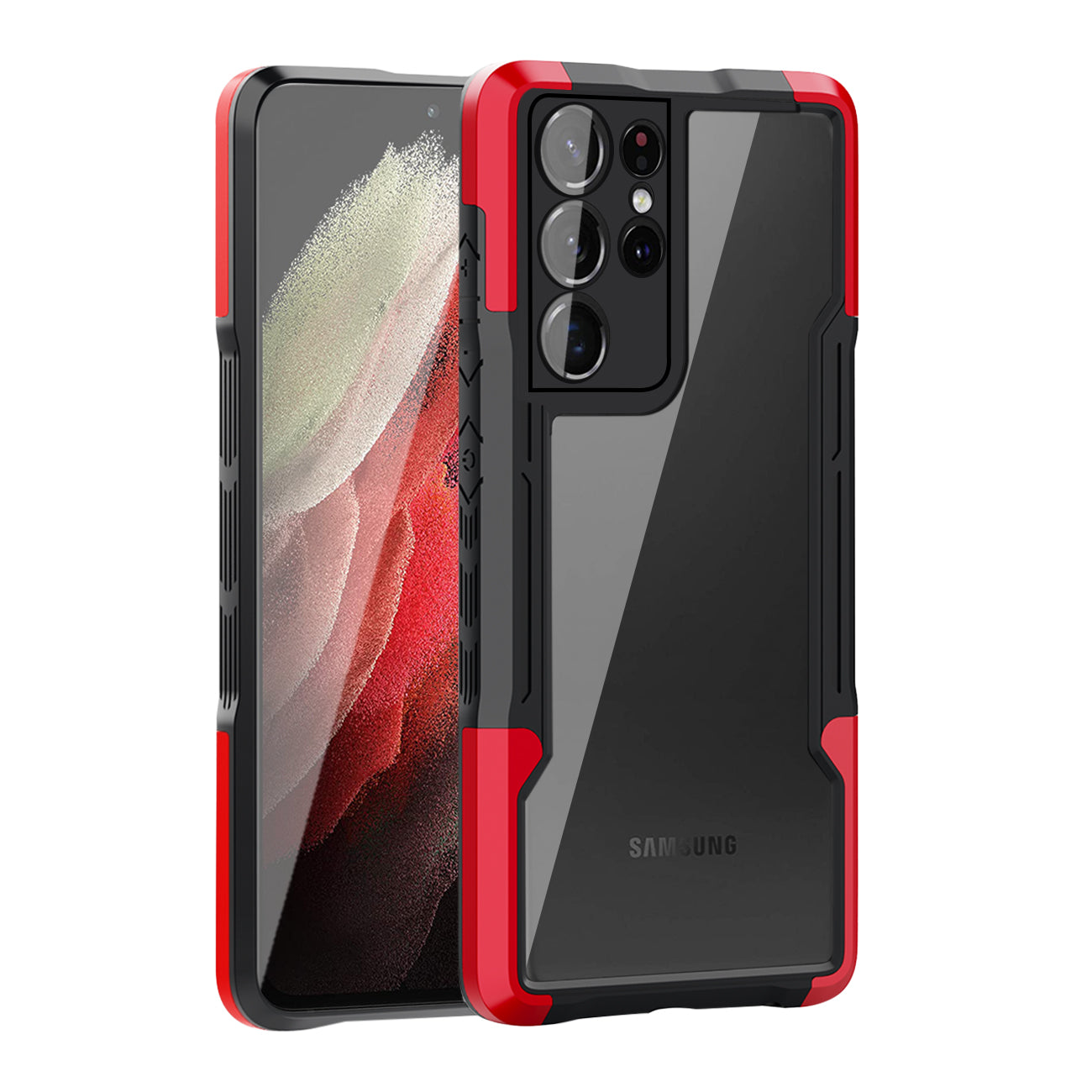 Shockproof Excellent Grip with Silky Feeling for Samsung Galaxy S21 Ultra In Red quantity