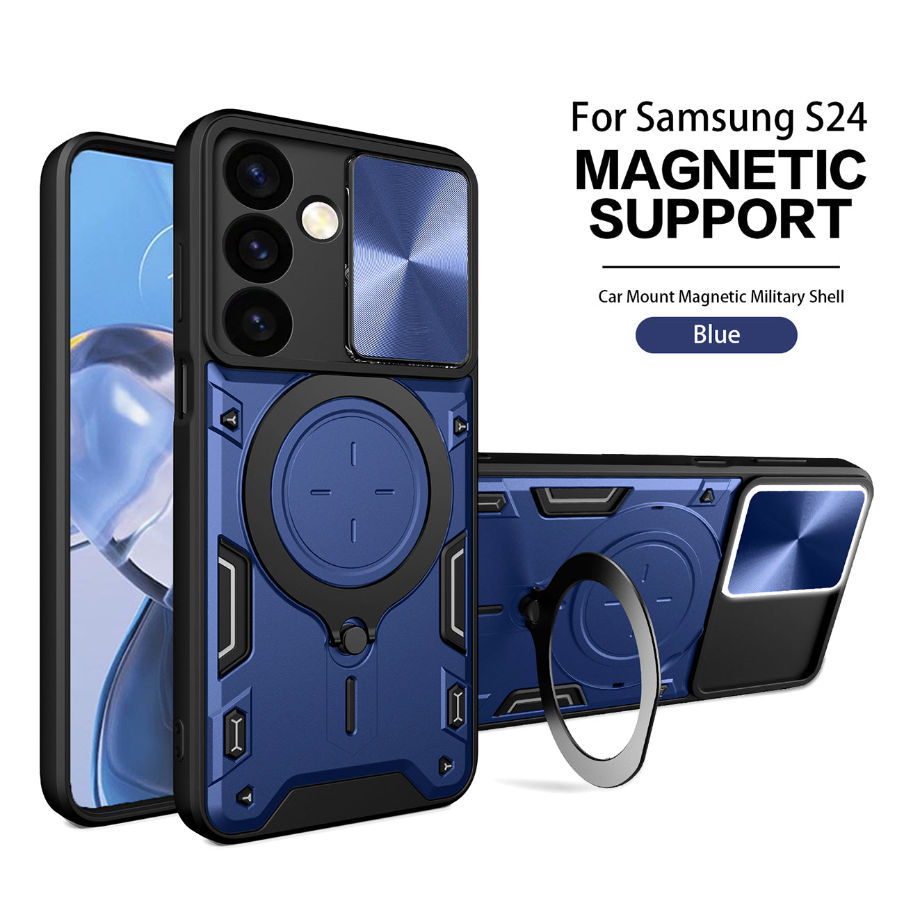 / TPU PC Shockproof Magnetic Phone Case with Free Adjustment Ring Holder For Samsung Galaxy S24 in Blue