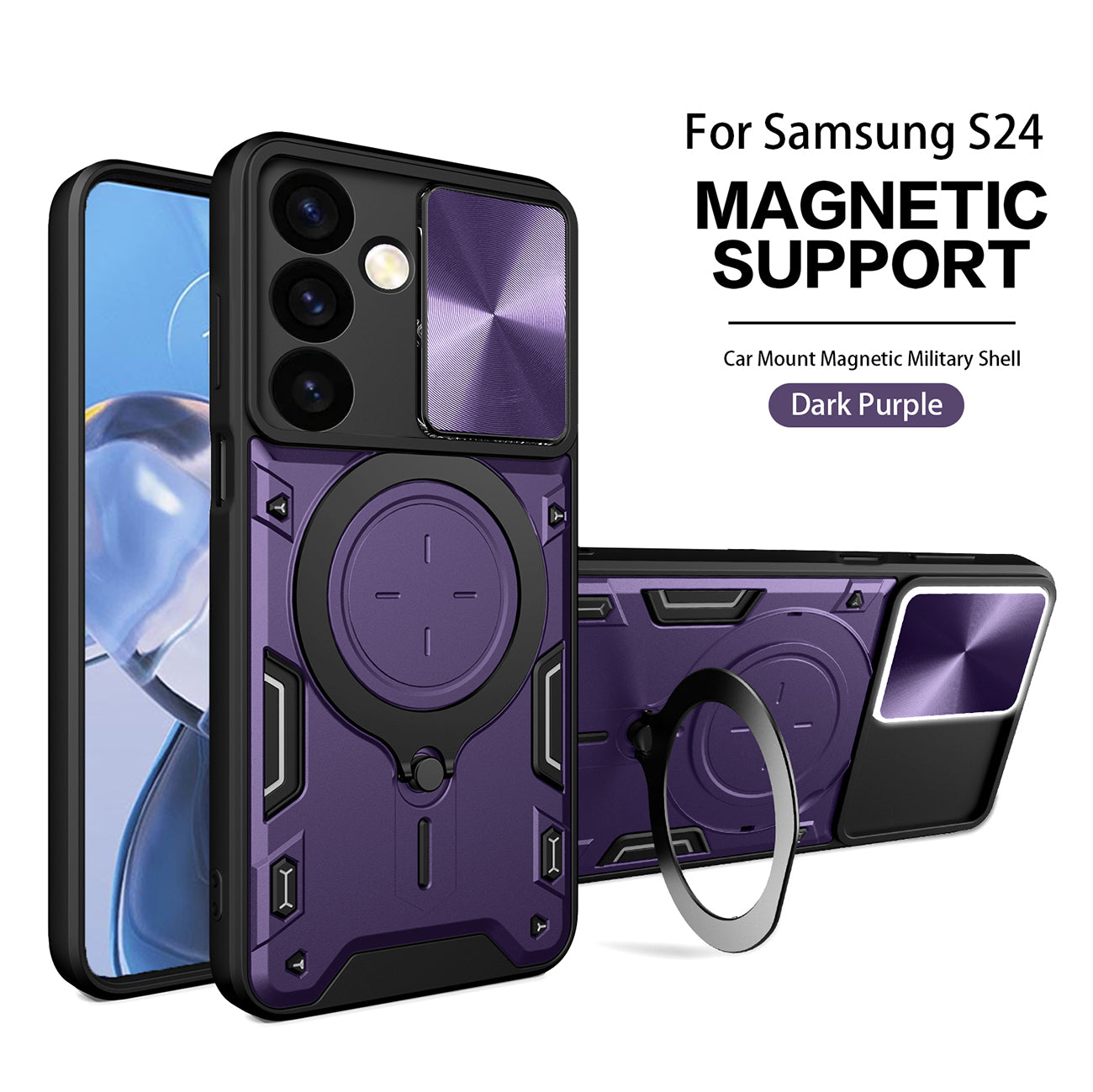 / TPU PC Shockproof Magnetic Phone Case with Free Adjustment Ring Holder For Samsung Galaxy S24 in Purple